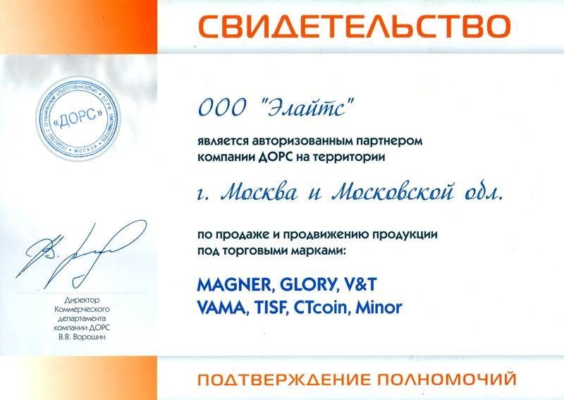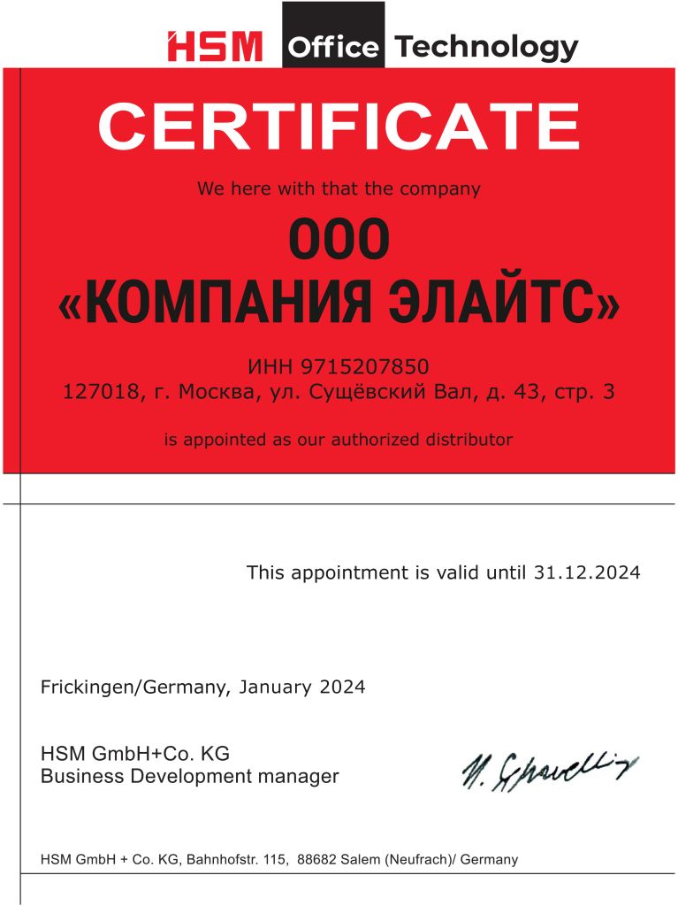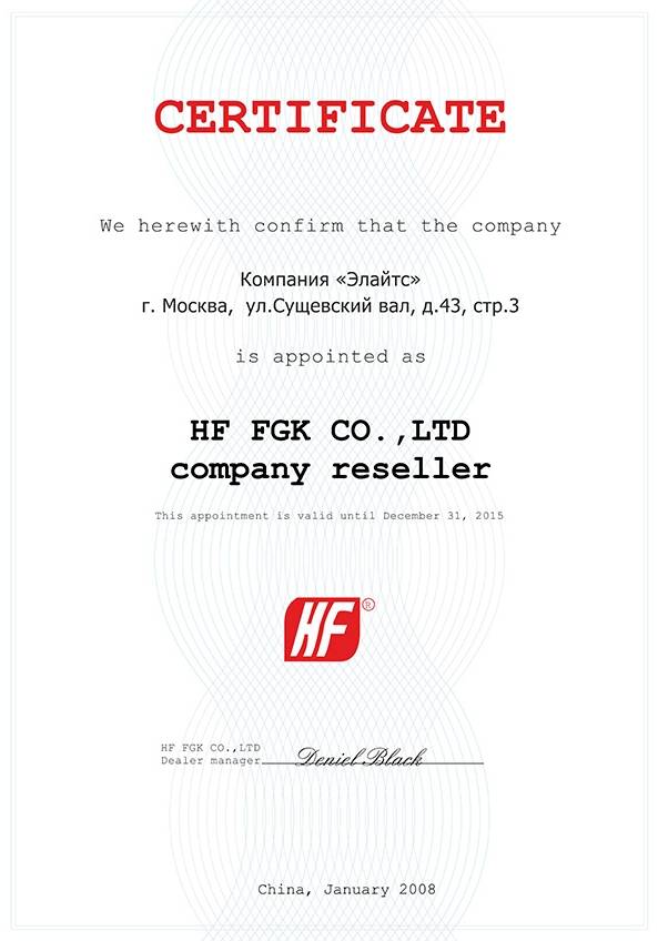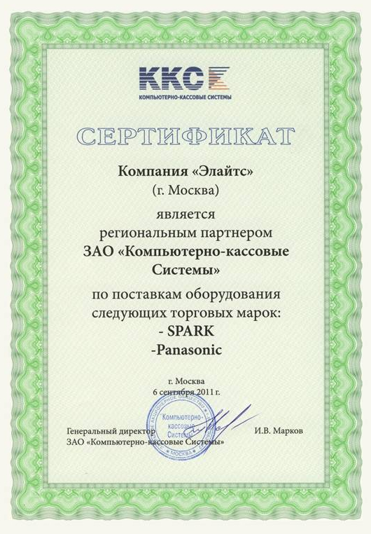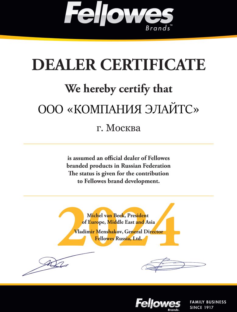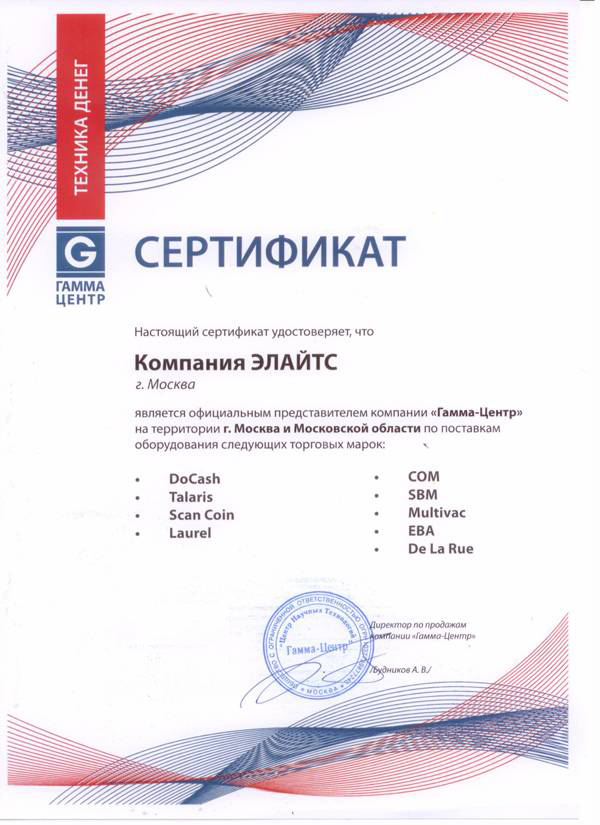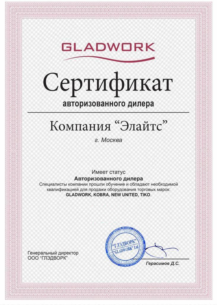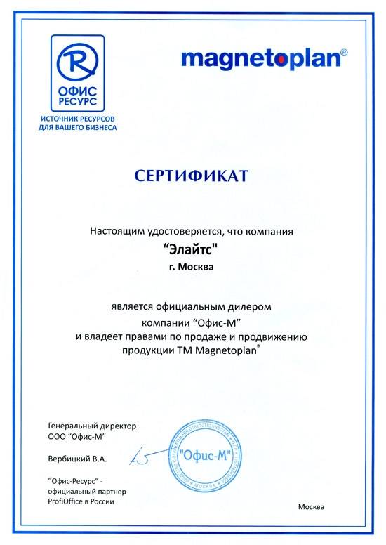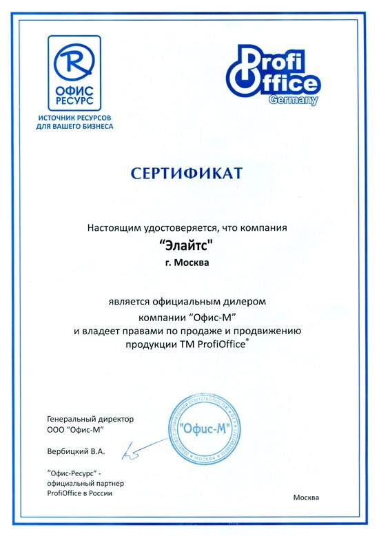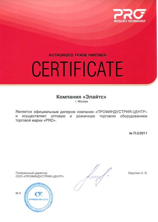 Компания "Элайтс" является сертифицированным представителем многих производителей оборудования, что подтверждается сертификатами: