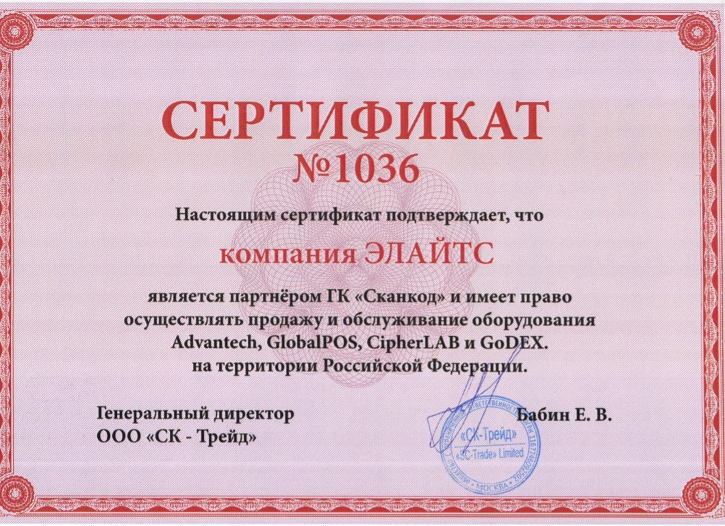 Элайтс является партнером таких компаний как Атол, Штрих, Дорс, Крафтвей и Гамма-Центр, а также полномочным дилером таких производителей как: Motorola, Honeywell, Posiflex, Zebra, Magner, Cas и Docash.
