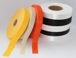 Изготавливаются из нейлона, полиэстера, сатина, изображение и текст наносится термотрансферным принтером с помощью красящей ленты. Текстильная лента может быть однослойной или двухслойной, допускающей печать на обеих сторонах ленты. Используя цветные текстильные ленты с оптимально подобранным цветом, можно выгодно подчеркнуть стиль изделия, сделать вшивной ярлык не только носителем необходимой информации, но и постоянно действующей рекламой компании-производителя, т.е её фирменным знаком.